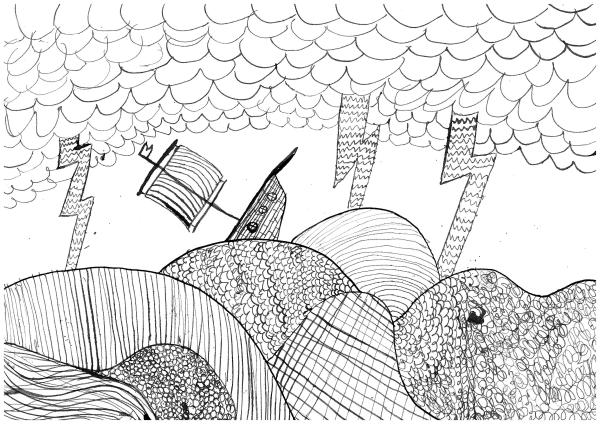 (7) Thema: Schiffe im Sturm - Federzeichnung